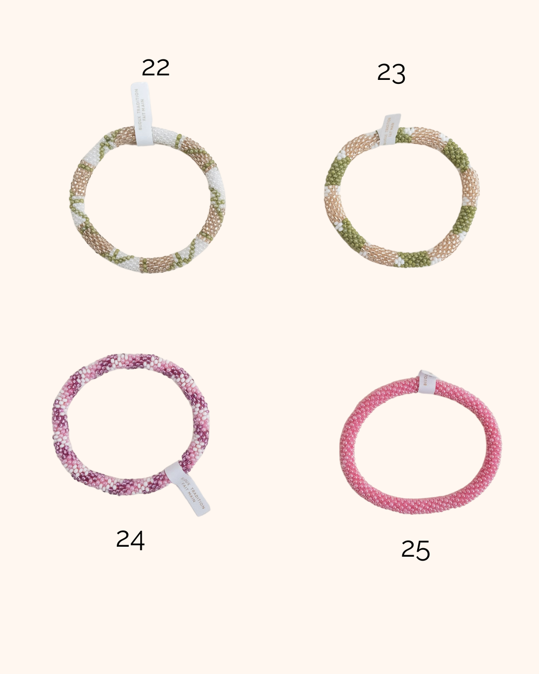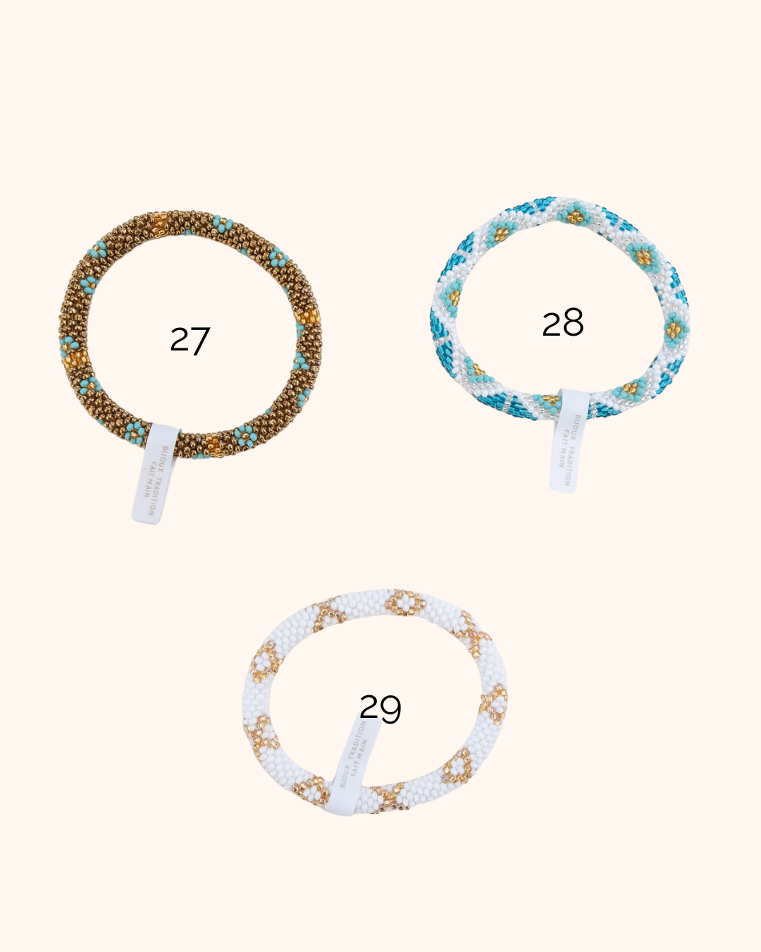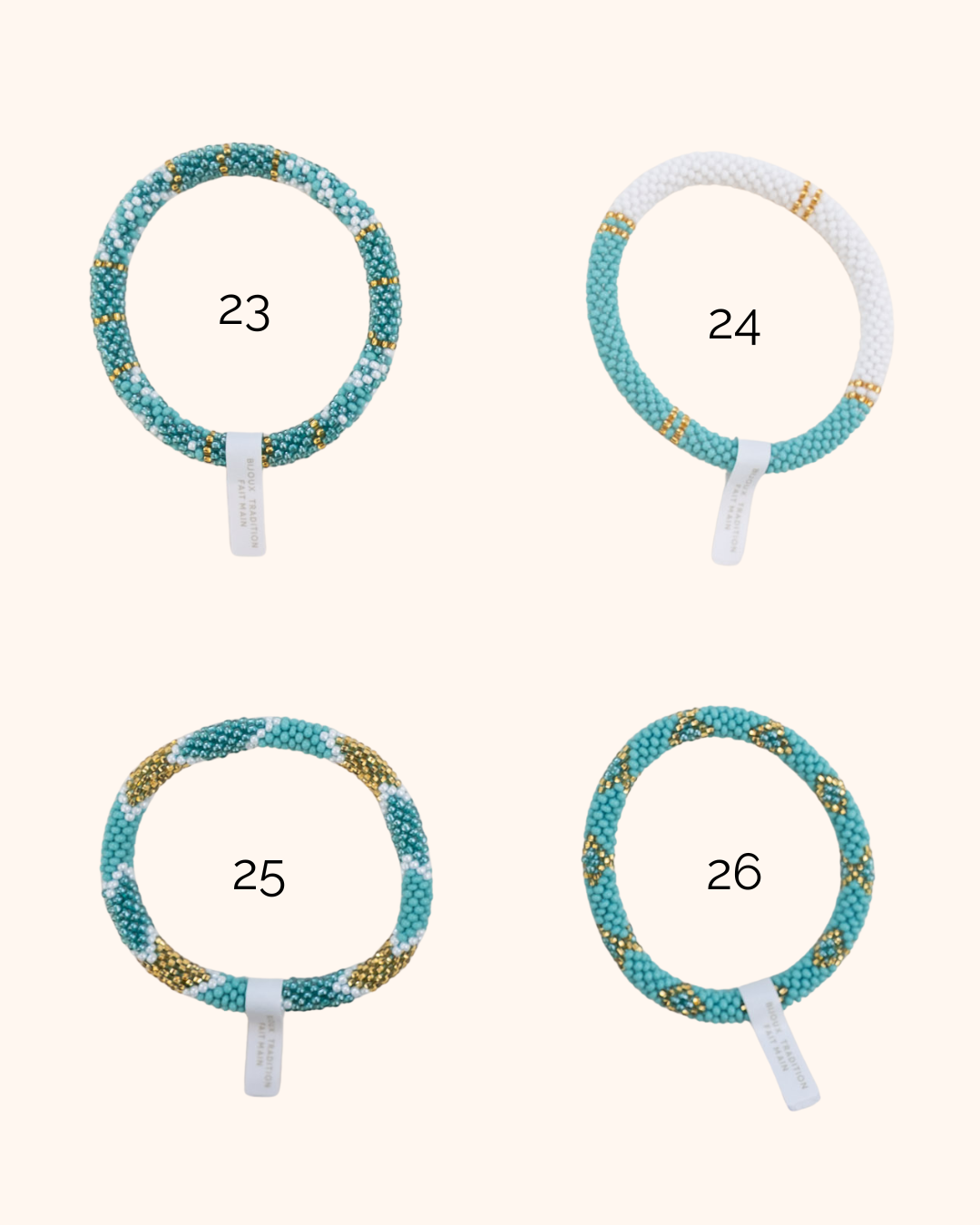 Grâce à la technique du crochet, elles enfilent minutieusement chaque perle sur un fil résistant. Selon la femme qui réalise le bracelet, le crochetage peut être plus ou moins serré, ce qui rend chaque pièce unique. Diamètre intérieur : environ 5,5 cm (s’étire jusqu’à 6,8 cm). Le bracelet s’enroule autour du poignet et s’ajuste à sa taille grâce à l’étirement des fils de coton très robustes.