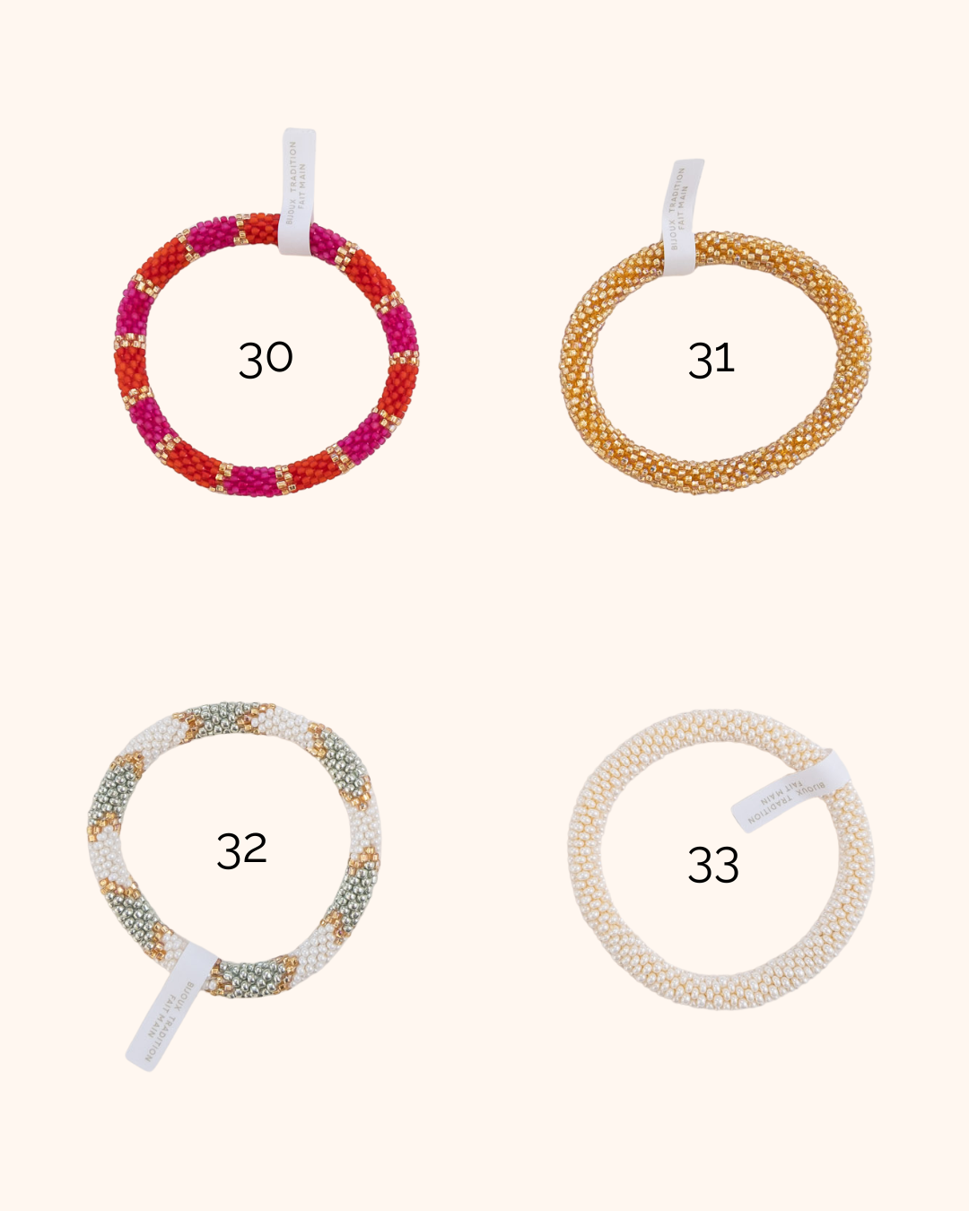 Imaginés en France et crochetés à la main par des artisanes au Népal, ces bracelets en perles de verre allient savoir-faire traditionnel et style bohème. Des bijoux uniques, authentiques et chargés d’histoire, à porter seuls ou accumulés.