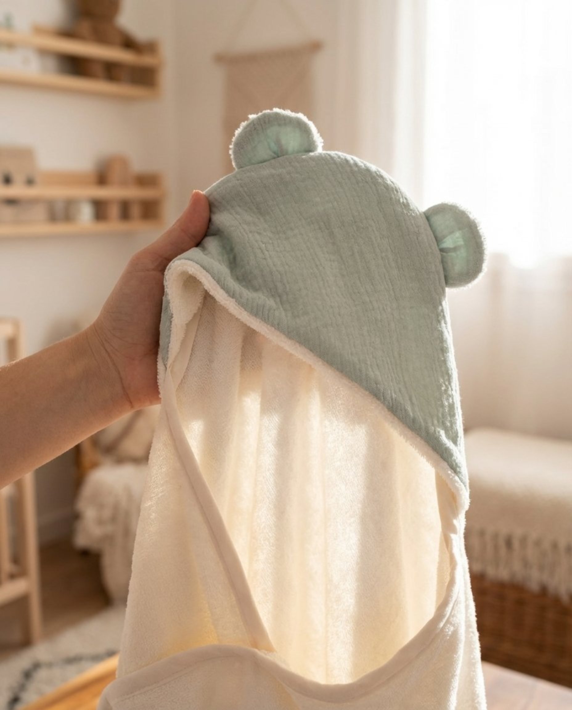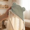 Enveloppant bébé de douceur après son bain, la cape ourson le réconforte dans une étreinte chaleureuse, transformant chaque instant en une tendre parenthèse de bonheur.