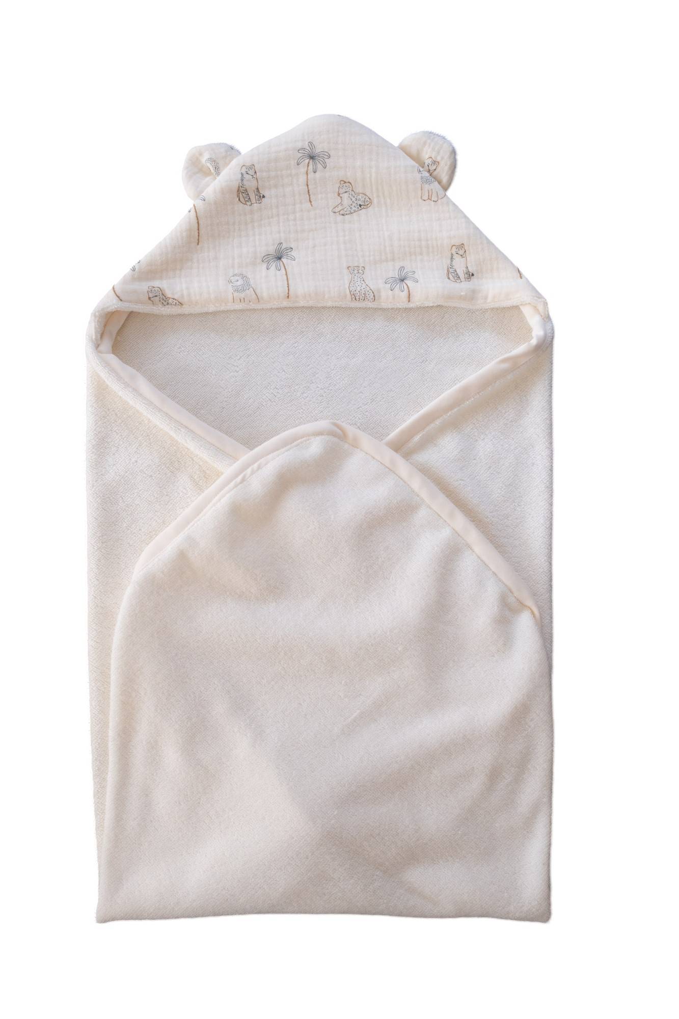 Enveloppant bébé de douceur après son bain, la cape ourson le réconforte dans une étreinte chaleureuse, transformant chaque instant en une tendre parenthèse de bonheur.