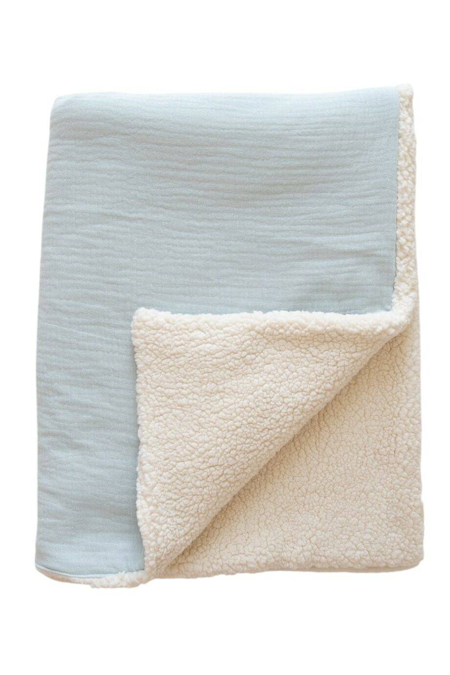 Tissu recto 100% Coton double gaze Bio (Selon choix). Tissu verso sherpa 100% polyester Oeko-Tex, très doux, effet mouton. Epaisseur au choix :
