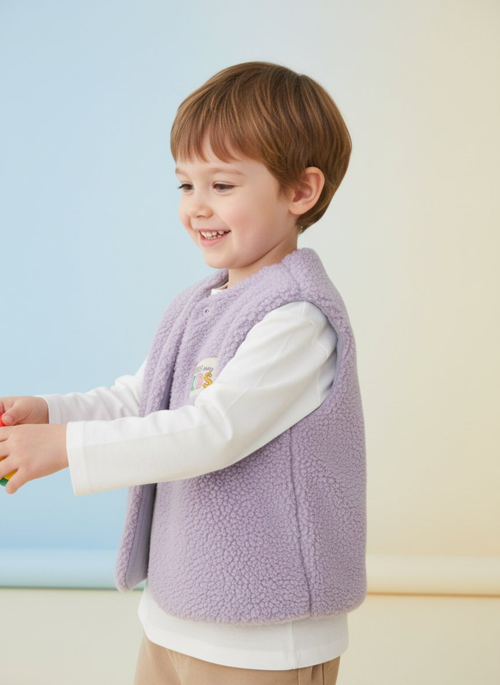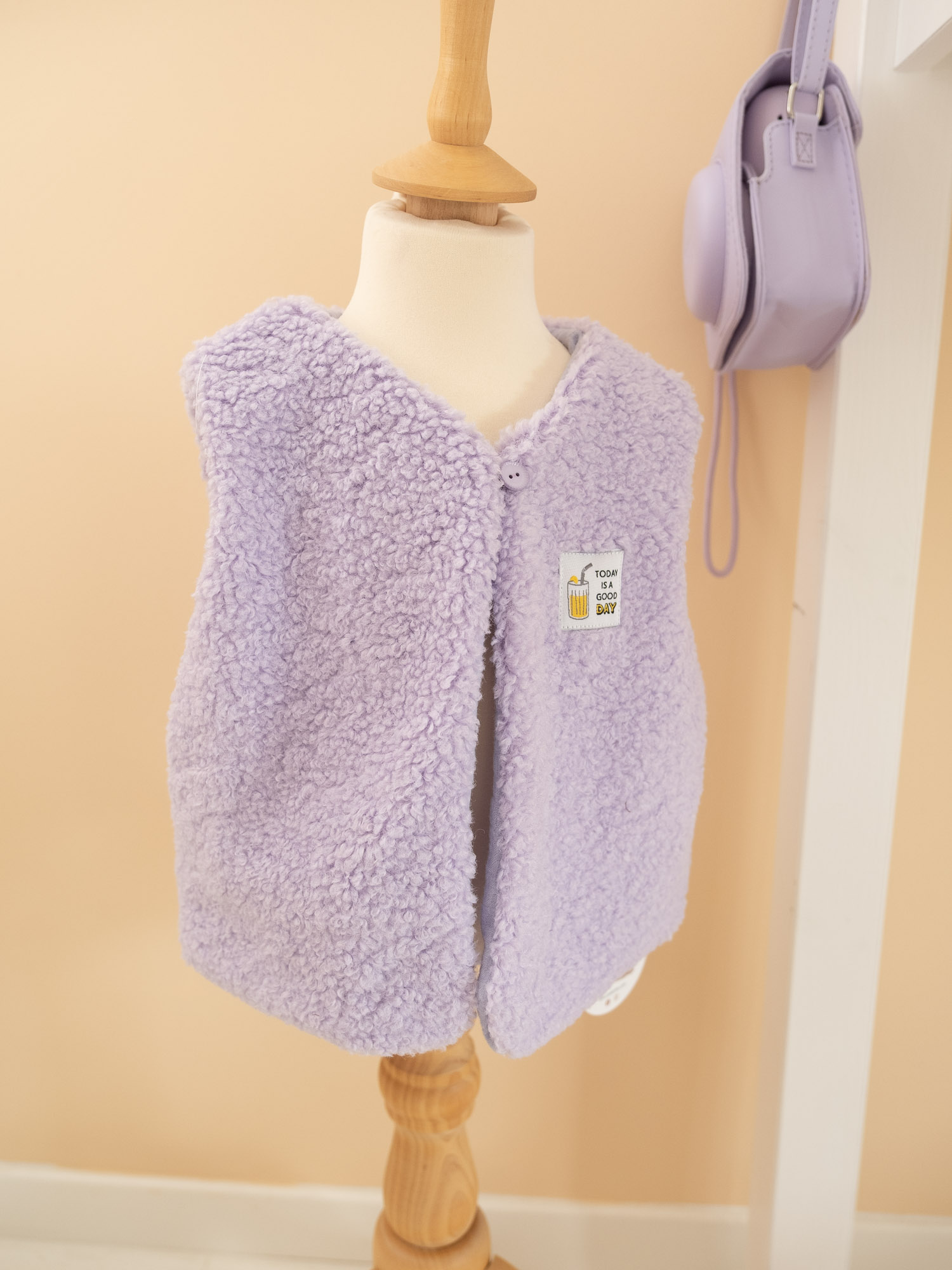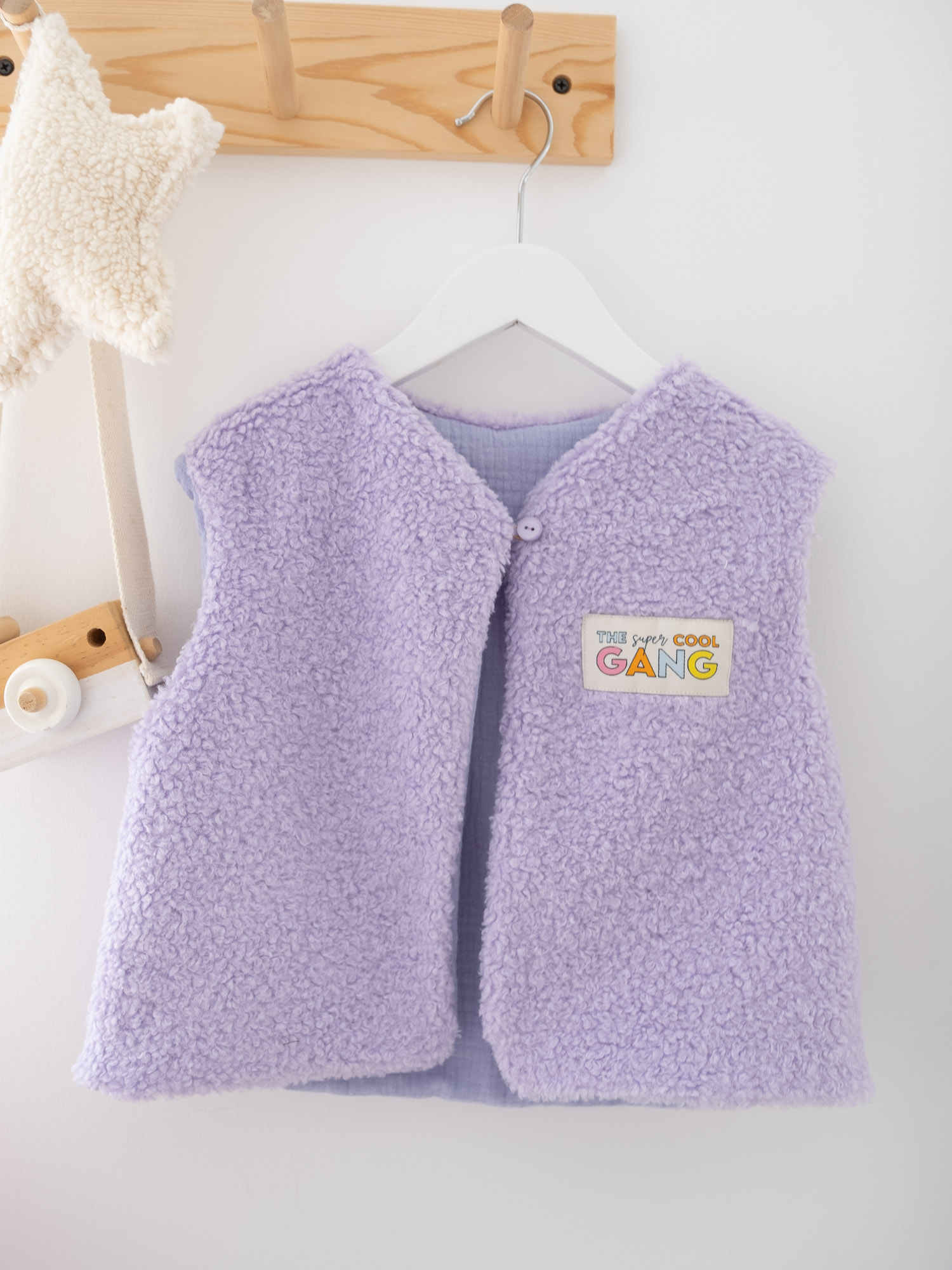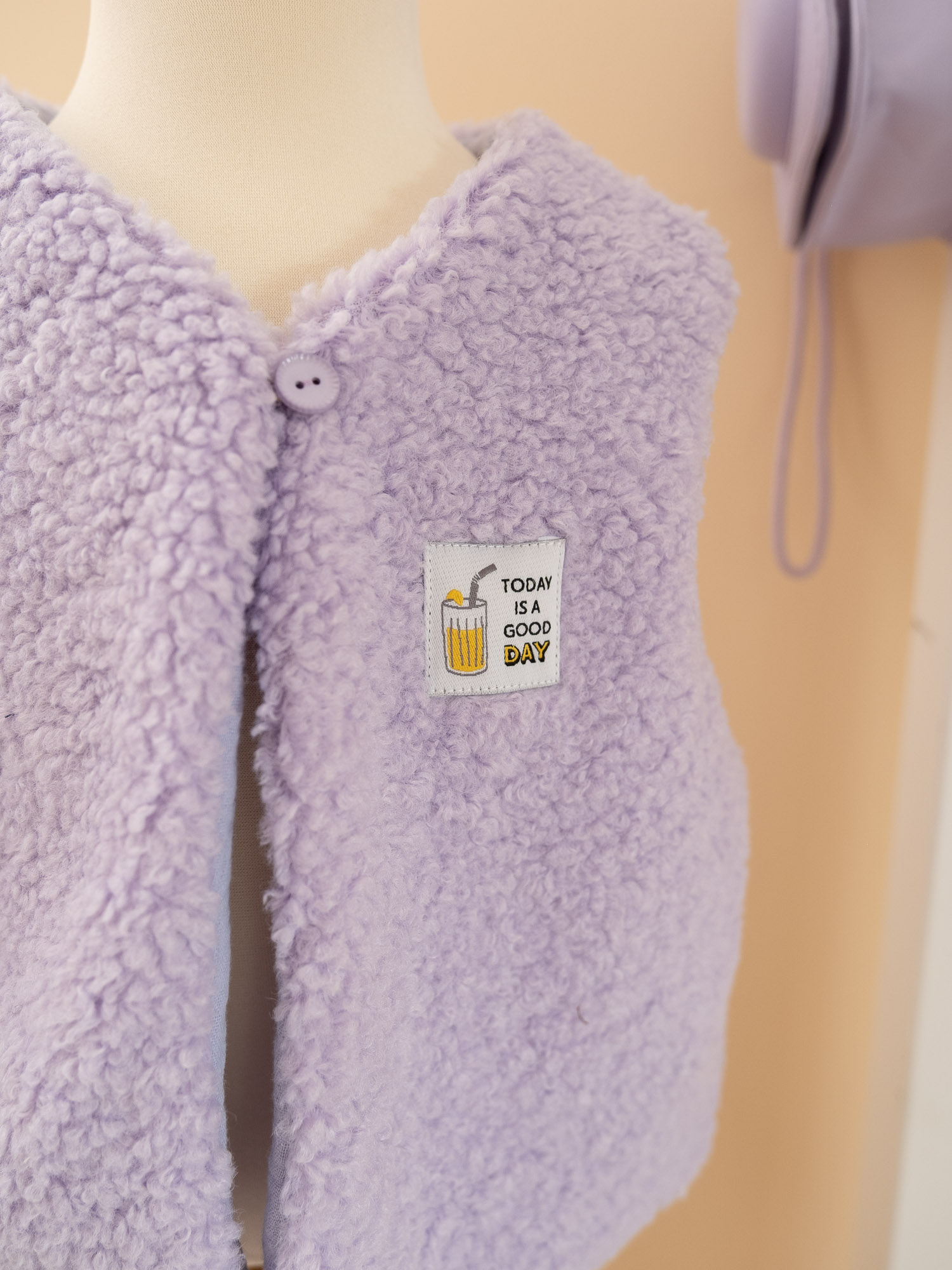 Le gilet parme stylé, à personnaliser avec l’étiquette de votre choix.
