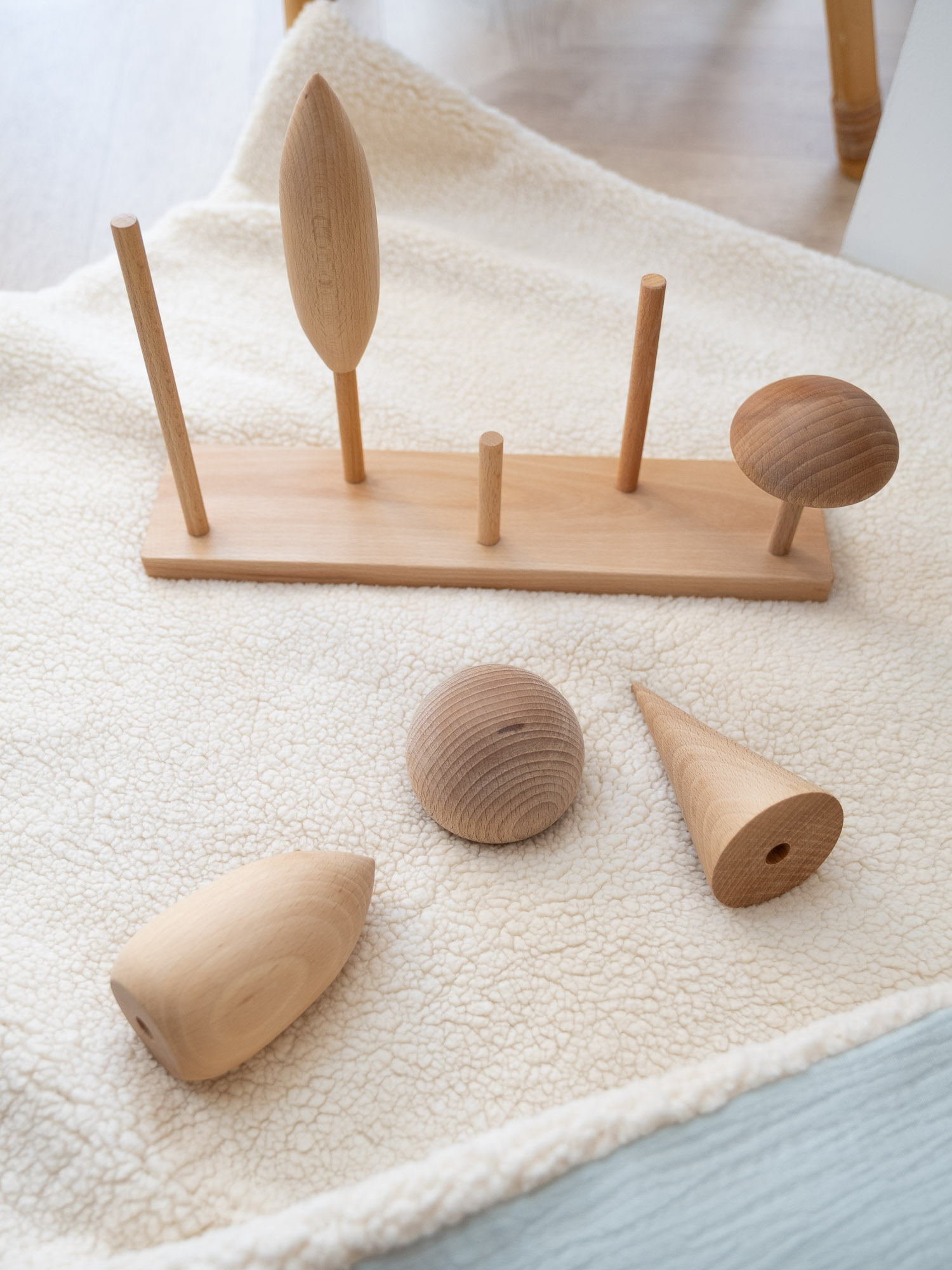 Couronne d’arbres à empiler : un jouet en bois artisanal qui stimule l’imagination et la motricité en douceur.