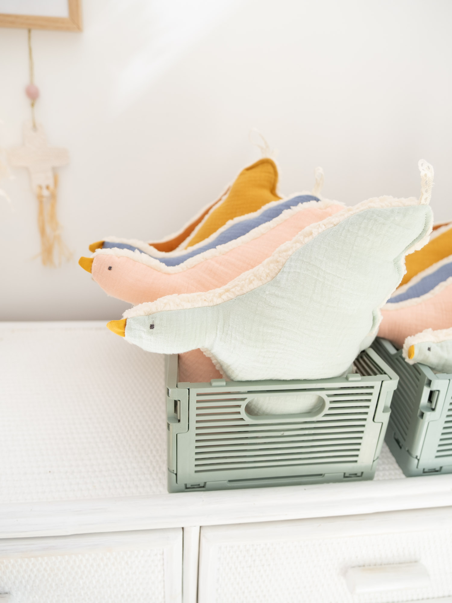 Cet oiseau mural en moumoute et double gaze, personnalisable à souhait, apporte une touche douce, poétique et unique à la décoration de la chambre de votre bambin. 🕊✨