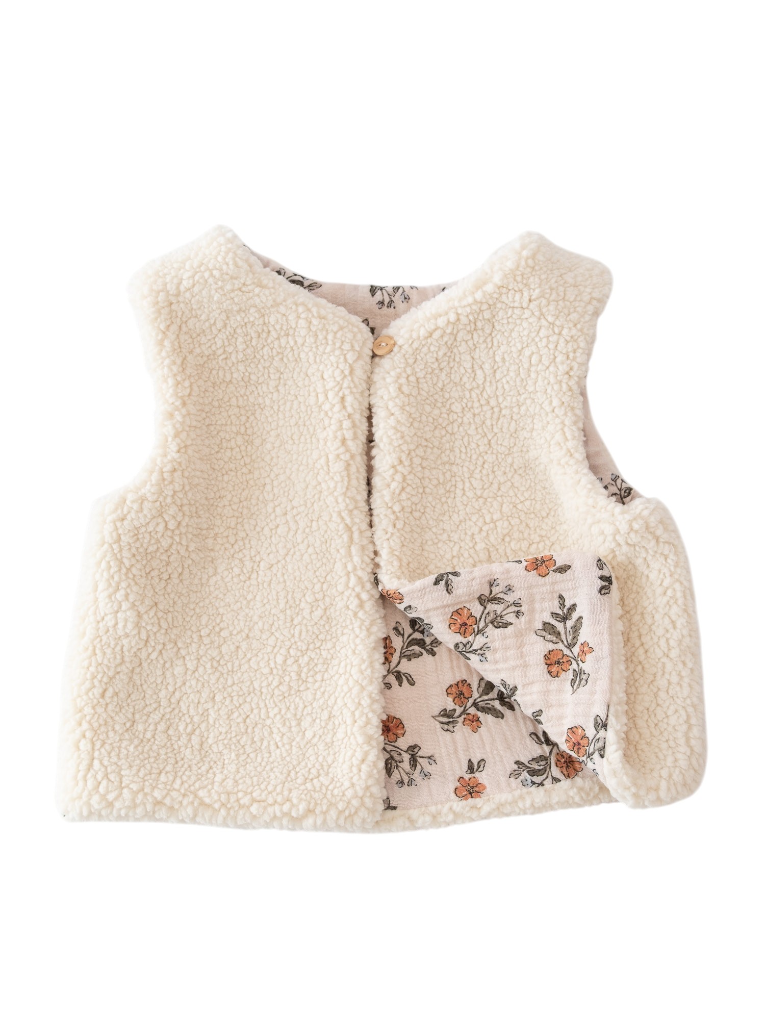 8 tailles aux choix: de 3 mois à 8 ans. Notre veste sans manches en sherpa moumoute est la solution idéale pour garder votre enfant au chaud. Confortable et élégante elle est parfaite pour être associée à une petite tenue cool (sur une tee-shirt) ou plus chic sur une chemise. Notre veste est confectionnée avec un sherpa moumoute Oeko-tex de très bonne qualité, spécialement choisi pour sa douceur exceptionnelle. Choisissez votre tissu intérieur, en double gaze de coton Oeko-tex aux designs adorables. Mettez-la rapidement et enlevez-la sans tracas, ce qui est essentiel lorsque vous avez affaire à un enfant actif. Elle offre une protection contre le froid tout en permettant à votre petit explorateur de bouger librement.   C’est plus qu’un simple vêtement, c’est une caresse chaleureuse pour votre petit trésor. Pssttt!!! Pour l’achat du duo Veste gilet maman avec celui de votre enfant, une réduction de 10 euros est alors appliqué, parce que l’on adore vous faire plaisir! -> C’est par ici : https://www.roseboho.com/produit/duo-maman-enfant-veste-gilet-sans-manches-sherpa/